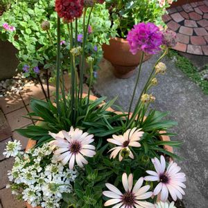 アルメリア、イベリス、オステオスペルマムの寄せ植えを作りました。 春が待ち遠しいですね。