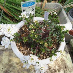 宿根イベリス upしようとしたら、今日3/24のお花でした。 春の色にしたくて、白と黄色の寄植え♫