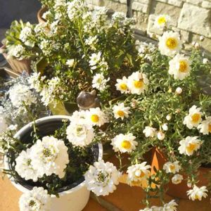 玄関前の花かんざしとイベリス。 どっちも大好き❤