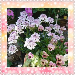 No 282 今日の花✨イベリス✴✨ 花数が少なくなってきてたけれど、また、咲き始めました🎵 クラシカルな色のビオラと…。