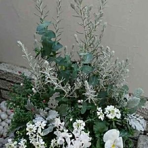 おはようございます☺️💚 寒くてお布団ラブ💕な 今日この頃~風も強くて 乾燥してます(*´ω`*) 寄せ植え🌿限りある素材で 限りなく白を目指す~ って100%はやっぱ無理 まだまだ修行中🌱 のびしろなら負けないゾ(笑)