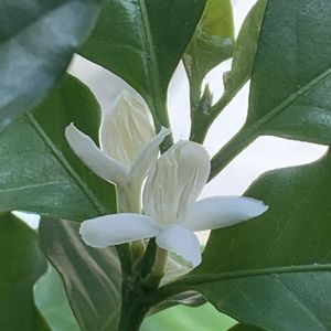 晴れ間が広がって気持ちいい☀️ 4月最初のpic🌼 コーヒーの木‥花が咲いた(꒪ˊ꒳ˋ꒪)ꕤ*.゚ 一度は瀕死状態になったけど、その後元気になってくれて ようやく花が咲くまでに育ってくれた( ˃◡˂ ) 初めて見たけど、上品な花だなぁ(❛ᴗ❛人)✧