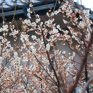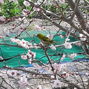 まだ、梅の花咲いてます! 2羽のメジロちゃんが遊びにきました。
