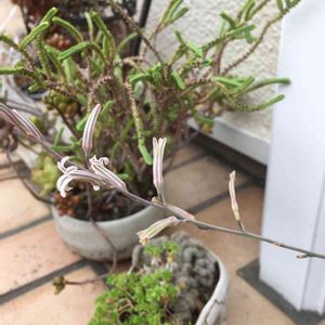 トンガリ多肉 ガリクソンに花が咲いてた。 長ーく伸ばした枝の先に花が付いてるので、本体映ってないけど。