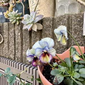 探して見つけたフリルのビオラたち💕 かわいいーお迎えできてうれしい🥰 左後はフリル咲きミニパンジー その前の白のビオラはなんちゃってフリル🤣 名もなき70円のビオラだけど、 ヒラヒラしてて気に入ってます💕😊