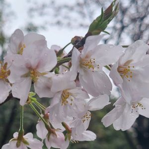 CHERRY BLOSSOM 「桜🌸」 4月3日pm1:52頃 ✧p📷qω•,,´)パシャ✧ 今日は朝からずっと雨☔ 最近は外の仕事が多いから、出来ないのでお休みです。 午後から用事があったので、近所の桜並木の様子を見に行くと、8分咲きで咲いていました。 近くのスーパーの駐車場に🚗³₃を止めて、歩いて🚶👣写メをして来ました。 丁度小雨になったから☔🌂ラッキー(*'ᴗ'*)v 🌸染井吉野さんかな? 咲き始めは、うっすらピンクで、時間が経つと白くなるとネットで書いてありました。