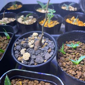 パキコルムス ディスカラー 21/01/21播種 19コ発芽 1番発芽率が高い。早いだけか メネデール水につけてる段階から種が膨らんでた。土に乗せて1日で根っこが出て、2日で葉っぱが出てきてて成長も早い でも、大きくなるには時間かかるでな😞