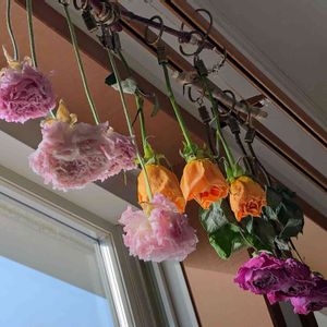 ラナンキュラスと薔薇を干しました☺ 予報より晴れて嬉しい〜✨ 近所の花屋さんの奥さんが復帰して 嬉しい〜✨ 次男の笑い声が隣の部屋から聞こえて 嬉しい〜✨✨ 長男が運転免許証ゲットして心配だけど 嬉しい〜✨✨✨