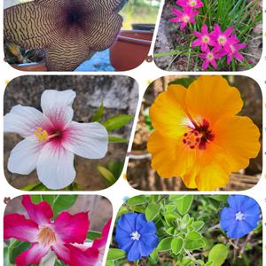 おはようございます😊 スタぺリア サフランモドキ ハイビスカス🌺2種 アデニウム アメリカンブルー 今 我が家で咲いてるお花達 🌼💠🍀🌻 29℃