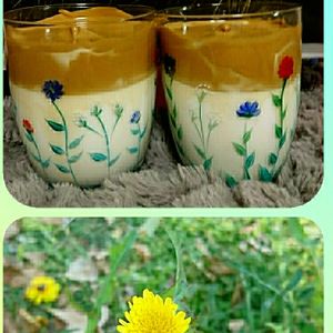 おうちCafe ☕ ランチの後は今韓国で流行りのタルゴナコーヒーでまったりします✨ お花はオニタビラコ💛 お花はノゲシの間違いでした😅訂正します😅