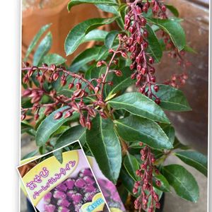 あせび「 バーレバレンタイン」です。この品種は濃紅花とのことに惹かれて苗を購入したものです。つぼみが赤くなってきて楽しみです😊