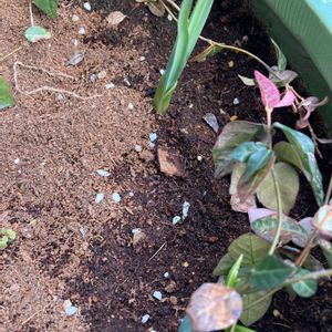 もう1枚 謎の球根は、こんなことになっていました ひとつはブルー?パープル? 手前の子は、ぐんぐん伸びる( ̄▽ ̄;)💦…ぐるぐる🌀葉っぱが私のイチオシ☝️ 斑入りの葉の子ほかの子は、まだ様子が見えません 今日から、晴れの予報だけど太陽は姿を見せていません…