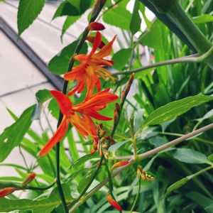 ヒオウギズイセン 我が家でオレンジの花は 珍しい部類かも? 紫が多いので😅