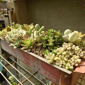 雨樋の子持ち蓮華ちゃん😊 コロンコロンで可愛い💕 風で土が飛ばされ、かなり減っちゃってる💦 補充しなきゃ‼️