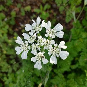 オルレア・ホワイトレース こぼれ種から開花🤗 何年か前 他の場所に植えた種を パラパラ蒔いておいたら 毎年こぼれ種で 咲いてくれます😊 コスパ最高❣️