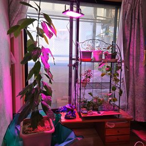明け方に気温がひと桁になったので、 植木達の越冬準備をしました。 LED 照明の育生灯です。 苗を育てる温シート などで冬を迎える準備しました。