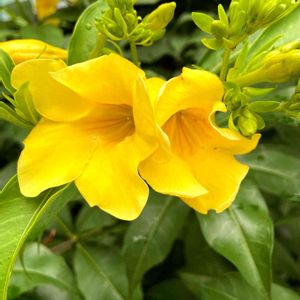 アラマンダ💛の花が咲きました 蕾も沢山付いています💛 キョウチクトウ科 (アリアケカズラ)