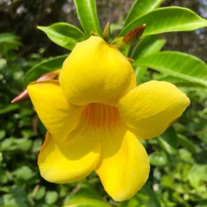 ホテルの敷地内に 咲いていたアラマンダ🌿 和名:アリアケカズラ