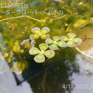 ウォータークローバー 「ムチカ」 鞭か飴か?(笑) 違うよ! 水草の「ムチカ」です。 花は咲かないけど、暖かになると、爆繁殖してくれます。 これもオキザリスの系統なのかな? いっぱい増えても四葉のクローバーですよ。 葉っぱは大きくなると5cm位かな? 緑が綺麗ですよ。 ◎⚪︎。.(∵ )Э )3 喜んでます。