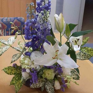 職場1階ラウンジの入居者の方の活け花🎵 訳あって、ここに飾られたお花(*^-^*) 哀しみと優しさが詰まってました💖