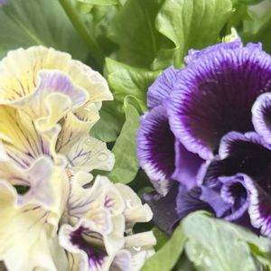 可愛らしいフリル咲きパンジー✨ 花びらに 白い縁取りが入るのが特徴!! やや小ぶりなので ビオラっぽい雰囲気ですね☻