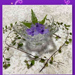 切り戻したスーパートレニア ガラスの容器に浮かべて 青紅葉の葉をお供に ワイヤープランツを 周りにはべられて💚