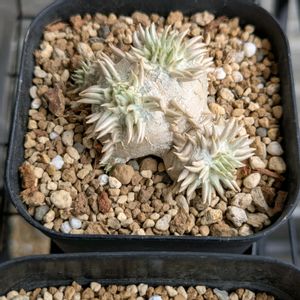 パキポディウム・ブレビカウレ 恵比寿笑い様 まだお目覚めになりません。 成長も遅いけど、環境変化に弱そうなので心配です。