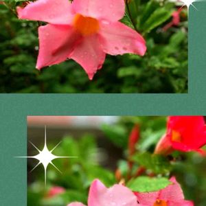 ~🌿サンパラソル🌿~ 花言葉 💖固い友情 情熱 💖別名 マンデビラ 🏷️カエル仲間 Hさん 🐸主催🐸 旅先🍡屋さんで置いてた🐸 🏷️花咲く乙女たち♡ 🏷️一期一会のお花♡ 🏷️愛の花♡ 🏷️コラージュ仲間達 参加しま~す