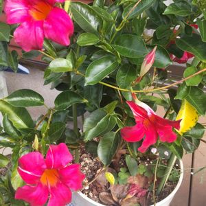 夏に瀕死になって格安で売られていたマンデビラ。復活✨‼️ 意外とそんな子達が好きかも✨