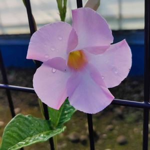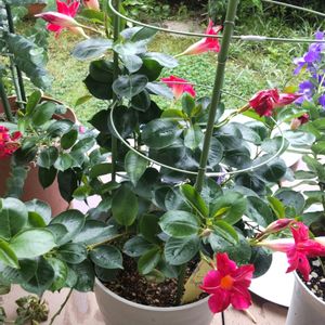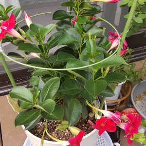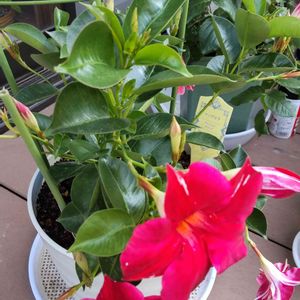 マンデビラ 花が咲き終わった子を 昨年購入 昨年の霜が心配でしたが 遂にお花を咲かせてくれました❣️