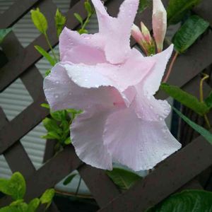 今晩は😊 6月から、投稿出来てなくて、40日振りの投稿です❣️🎶🎶 コロナ自粛疲れ、体力不足で、写真は撮り溜め、バルコニーパトも何とかしてましたが、モチベーションアップが出来ず、投稿しない日が続き、携帯開けても、寂しく毎日が続きました💦 梅雨明け前の不順な天候の為、夏風邪が長引き、衣替えetc、家事が山積み⤵️⤵️ 梅雨明けの前に、何とか投稿したいと、今日になりました🙇♀️ ❤️サンパラソル❤️マンデビラ 去年の夏、モントリオールで沢山見かけた 夏のお花❤️ 手入れもあまりしませんでしたが、去年の様に、蕾が沢山つき、雨にも負けず、強風にもめげずに、見事に咲いてくれました❤️ 唯一の私の元気の源でした😅👍 ヾ(☆︎'∀︎'☆︎)。゚+.нёLL○︎。゚+.(★︎'∀︎'★︎)ノ❤️•·♥︎τнänκ чöü♥︎·•(๑ºั╰︎╯︎ºั๑)❤️