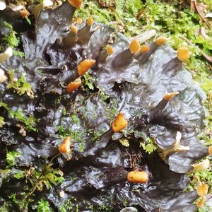 ツメゴケ 神社の石垣に地衣類ツメゴケの仲間が生えている🏷️ ウスツメゴケかな? へばりついたワカメというかキクラゲというか、本体から子器がたくさん出ているけれど、別に春だからというわけではなさそう(^-^ゞ 子器というのは地衣類の共生菌が胞子を作るところで、オレンジ色の子器が「爪」を連想させることからの命名らしい🌕️(2枚目)