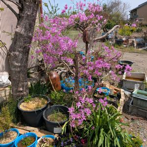 ミツバツツジは満開過ぎ〜葉が出る前に剪定すると良い天気は下り坂藪椿の抜根すると舗装が汚れるから雨の前に重機より大きいも一時間で完了!ん?根元から芽吹いた枝葉を挿し木出来ないか挑戦〜しかし太い根か出たら笑笑