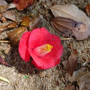 浜辺に落ちてた藪椿🌼 落ちても綺麗ですね!