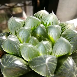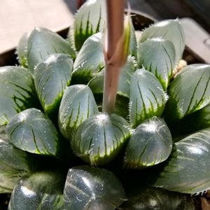 今日はハオルチアを日光浴させ、エケベリアに水をやり、のんびりしてます😊 ①全体的にうっすら青くて、葉がキレイです😃 葉数も増えてきて、これからどう育つのか楽しみ😊 ②あいかわらず、キラキラ✨してます 中に花芽がスタンバイ中👀 ③小さい方のコです 大きいやつがあまりにもキレイだったので、小苗から育ててみたくてこちらも譲っていただきました😍 小さい苗は、成長過程が見れる楽しみがありますね😃 うちの環境でどこまでキレイに育てられるかな😅