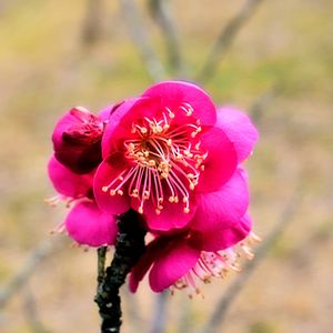 コ ウ バ イ (紅梅) 一重咲きで~す 💕💕 やっぱり、この形の方が "梅" らしいや・・・😆 🏷真っ赤な火曜日 🏷あっ火曜日 🏷ちっちゃいものクラブ 🏷蕊好きマニア