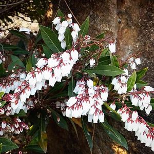 アセビ (馬酔木) この葉っぱ🌿を食べた馬が、酔ったようになった事からこの名が付けられました。当然の事、葉っぱ🌿には動物の呼吸中枢に作用するグラヤノトキシンと言う有毒物質が含まれている。奈良公園の鹿は、この葉を食べない事は有名な話。 しかし、この壷🍯型の愛らしい花は、早春の風物詩である。