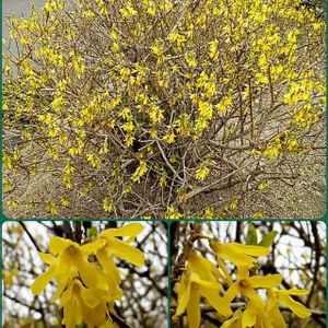レンギョウ (連翹) たくさんの蝶々がとまっているようですね。🥰 チョウセン、シナ、ヤマトなどの種類があるそうです。 これはどれだろう❓