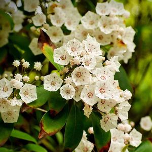 カ ル ミ ア 和名:ハナガサシャクナゲ(花笠石楠花) 別名:アメリカシャクナゲ ツツジ科の常緑低木です。 開いた花も蕾も、まるで砂糖菓子の様な可愛らしさです。他の木と間違え様がありませんネ。 原産地北アメリカでは高木に育つ様ですが、日本では低木として扱われています。
