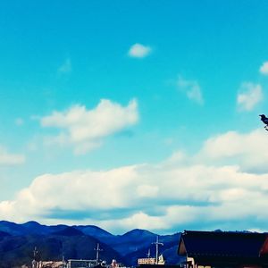 散策中に、ひめやま橋から空撮り、雲撮りです。街灯には、烏の見張り番がいます。