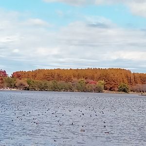 買い物帰りに、水元公園で紅葉🍁と✈
