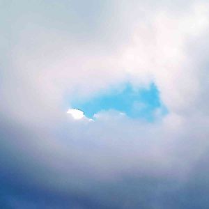 朝の散歩道。 大きな☁に覆われていて、🤳すると☁に青い🟦窓が有りました。✋を入れると、何か掴めるかな❓