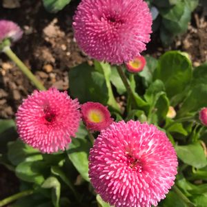おはようございます♪ 寒い朝です☀️ 今日のお花🌼🌸💐 デージー です。 昔は小さなお花ばかりでしたが、 最近は一つのお花が大きな チロリアンデージーがたくさん出回っています。寄せ植えにしたくて、赤や白やピンク🩷色を買いました。 冬の庭を明るくしてくれます。