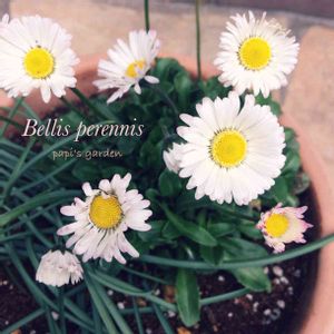 イングリッシュデイジー 花弁の先がほんのり桜色♡ ムスカリと植えてみましたが、どうなるでしょうか(๑´ㅂ`๑)