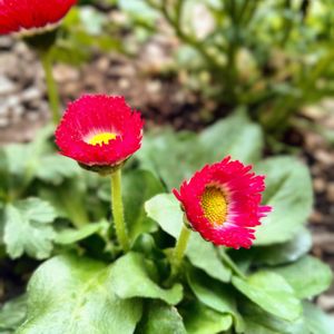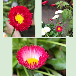 今日のお花・デイジー🌼🌸 *和名を雛菊または長命菊 別名をday's eye(日の目) 花芯の黄色を太陽に見立て日を受 けると花開き曇り日や夜は閉じる 事から付けられた。 *葉っぱにギザギザが無く 中心の管状花は黄色 *開花、2〜5月 *イタリア🇮🇹の国花 *花言葉:純愛、美人、平和、希望 赤花は、無意識 白花は、無邪気