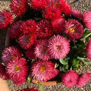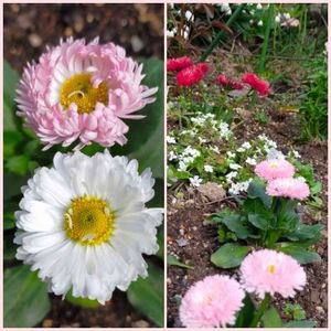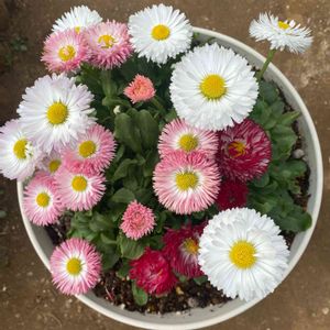 デイジー💗🤍 ひとつの株から白とピンクが咲いています。 いい感じにボサボサしてます♪
