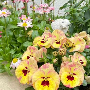 🎶 ビオラ タイガーアイ ♬ 昨日は暖房なして過ごせたのに、今日は寒ーい日になりました。 寄せ植えにしてあったタイガーアイを種から育てたデイジーと寄せ植えしました。 まだ、デイジーは苗なので、ちゃんと咲くかはわかりませんが…😅