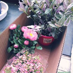 夫が JAで買ってきてくれました。 デイジーはわかるけど あとのは 忘れたと… ピンク系…😊