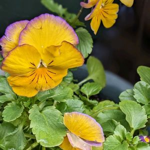 今日のお花 💛💜🤍🌿パンジー ユニークな花色虹色スミレです。 🏷愛しの紫