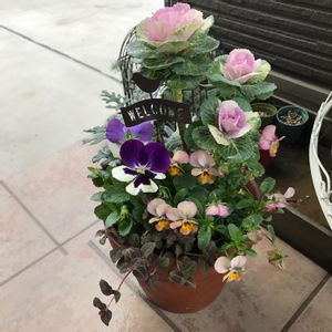 最近お花に興味が出てきた! という後輩の女の子にあげようと思って、育てやすそうな寄せ植えを作ってみました ꃔ わたしも葉牡丹ほしい!